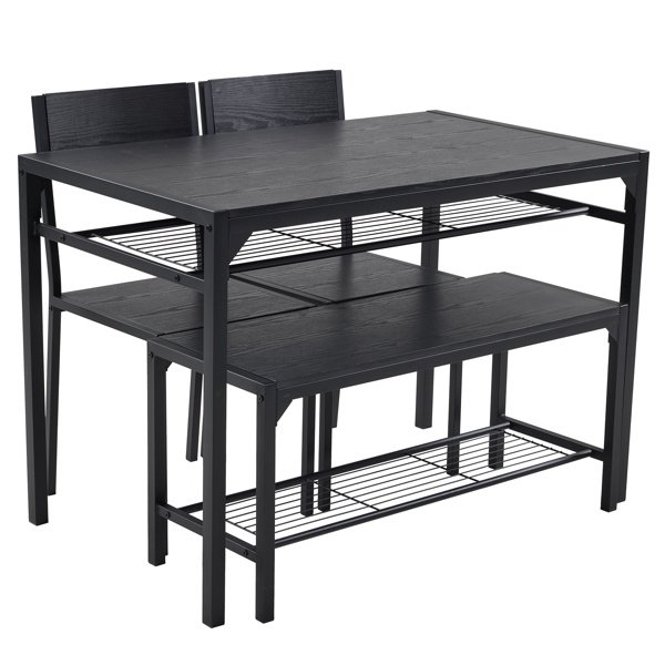 Home > Dining Table Set for 4, Kitchen Table with 2 Chairs and a Bench, 4 Piece Kitchen Table Set for Small Space, Home Kitchen Bar Pub Apartment, Black