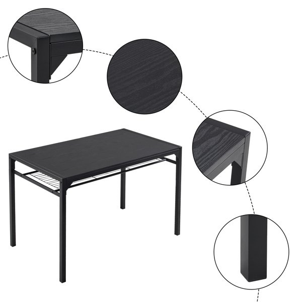 Enhance your dining experience with our Dining Table Set, where functionality meets elegance, providing a sophisticated solution for every meal and gathering in your compact living space. This comprehensive set includes a spacious table, two cozy chairs, and a bench, all designed to tuck neatly under the table to save space when not in use. Featuring storage shelves located beneath both the table and the bench, this dining table set offers ample space to stow away dining essentials or decorative items. Its modern minimalist design effortlessly blends with various home decor styles, making it a perfect addition to your home, kitchen, bar, pub, or apartment.